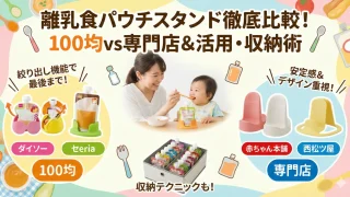 離乳食のパウチスタンドは100均で十分?ダイソーやセリア、西松屋の製品を徹底比較!JANコードや最後まできれいに絞り出す裏技、シンデレラフィットする収納術まで詳しくご紹介します。離乳食パウチスタンドの活用法をマスターして、お出かけ時の食べこぼし不安やストレスをスッキリ解消しましょう。