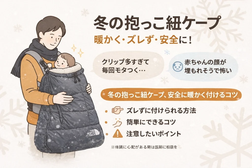 冬の「抱っこ紐ケープ 付け方」は、難しく見えてコツは固定です。
