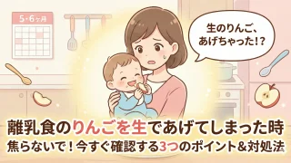 離乳食でりんごを生であげてしまった時は、まず赤ちゃんの様子を観察しましょう。窒息やアレルギーのリスクを知ることで、焦らず適切な対応ができます。離乳食のりんごを生であげてしまった後に出る下痢や嘔吐の判断基準、安全な加熱方法も詳しく解説。この記事を読んで、ママの不安を解消しましょう。