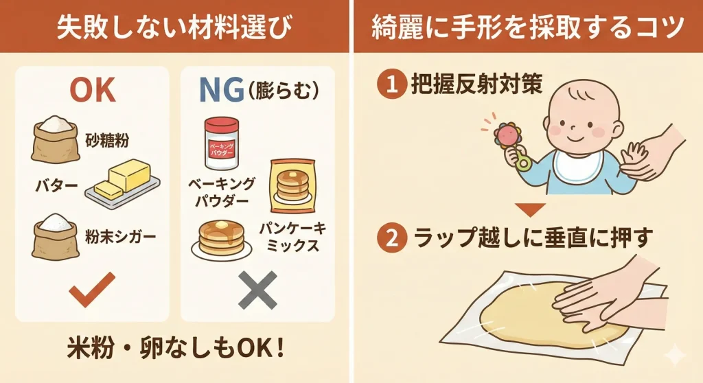 - 手形をくっきり残すための膨らまない生地の黄金比レシピ