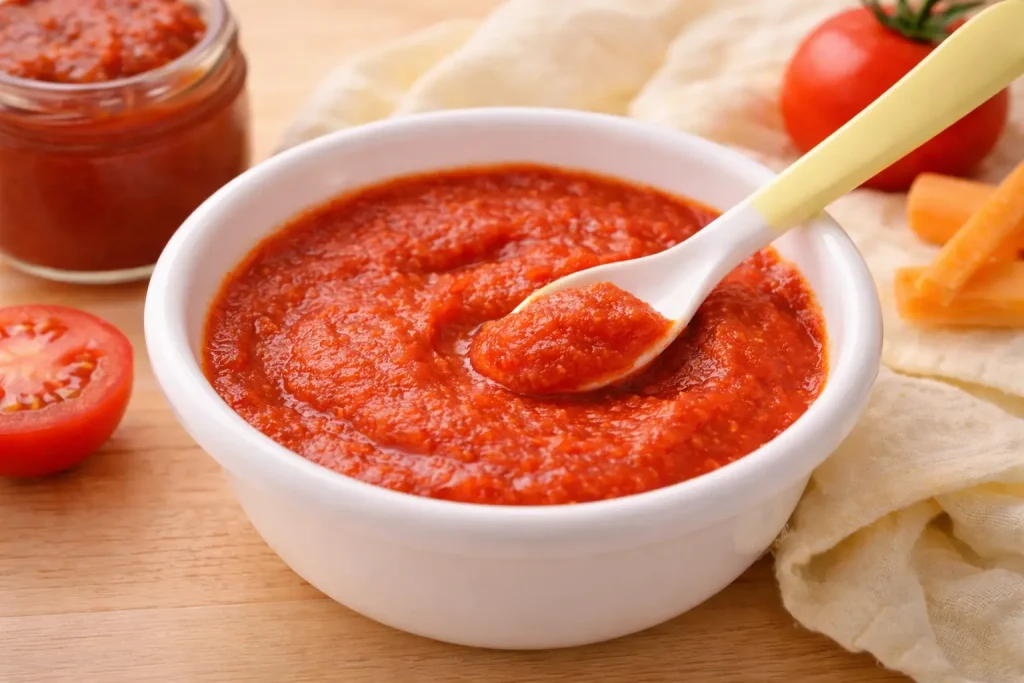 トマトペーストは、離乳食の味変に便利だけど、濃いからこそ「無塩を選ぶ」「薄める」「加熱」「少量から」が基本です。